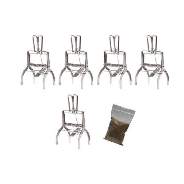 - Inclusief lokmiddel: Onze mollenklem wordt geleverd met een aantrekkelijk lokmiddel dat de mol naar de val lokt, waardoor de kans op een snelle vangst wordt vergroot.