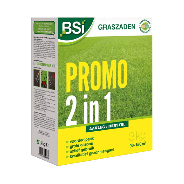 Of je nu een kale plek wilt omtoveren tot een groene oase of je bestaande gazon nieuw leven wilt inblazen, BSI Promo 2-in-1 Graszaad is de sleutel tot succes. Het is gebruiksvriendelijk en wordt geleverd met duidelijke instructies, waardoor zowel beginners als ervaren tuiniers moeiteloos een prachtig gazon kunnen creëren.