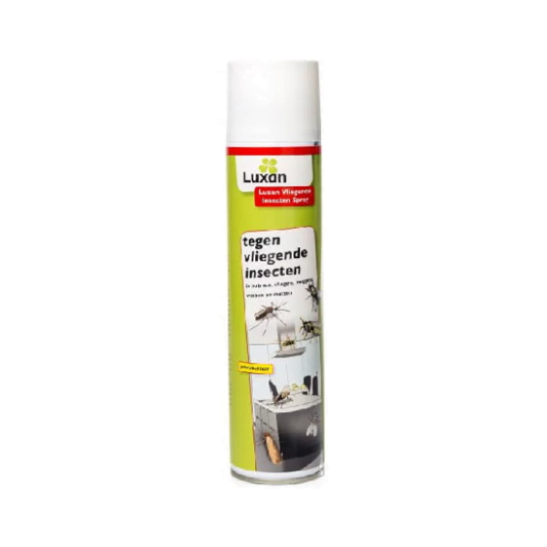 Luxan tegen vliegende insecten, schakelt vliegende insecten in één keer uit. De spray werkt op basis van pyrethrinen (insectendodend plantaardig extract).
